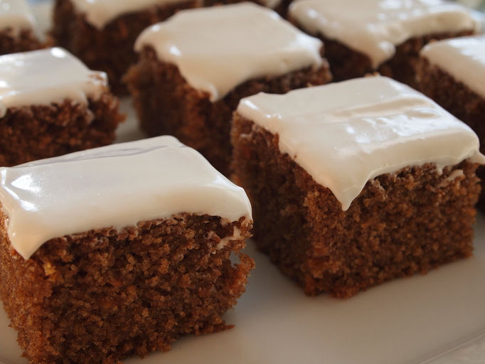 Lloyd's Carrot Cake is a fine specimen of cake, but there is a single layer of thin frosting on top.