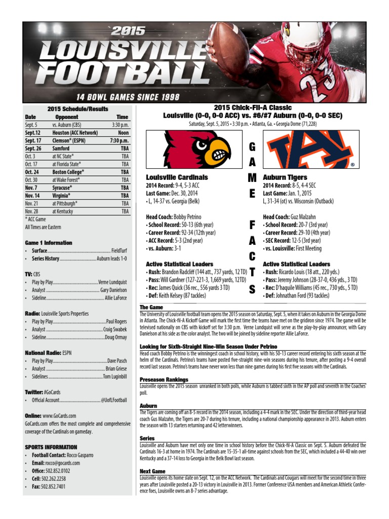 Louisville game notes: Auburn week (Depth Chart on Page 2) | Clemson ...